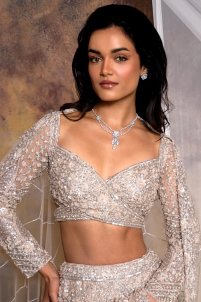This stunning double-string necklace, crafted from gleaming 925 silver, offers a modern and minimalist design. Dainty cubic zirconia studs subtly adorn the chains, adding a touch of sparkle without overpowering. Perfect for a sophisticated evening look, it's a versatile piece that complements any style.