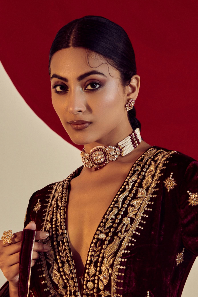 Noor Ruby and Polki Choker with Earrings