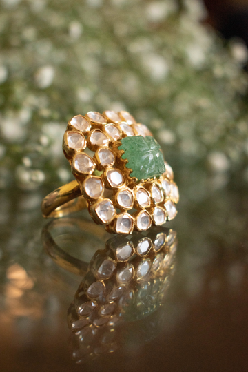 Vasanti Carved Emerald and Polki Ring