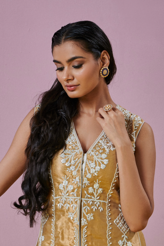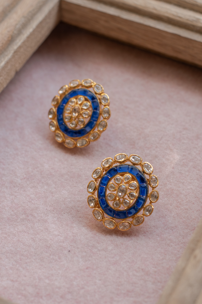 This piece is an ode to the season's trend of one of a kind studs. This piece embraces delicate elegance with these stunning 925 silver earrings. The centerpiece features a captivating blue gemstone, surrounded by a halo of sparkling white Moissanite polki. The intricate detail of the polki cut adds a touch of unique charm, while the cool blue hue evokes a refreshing and sophisticated air. These earrings are perfect for adding a touch of luxury to any outfit, whether it's a breezy summer dress or a sophisticated evening ensemble.